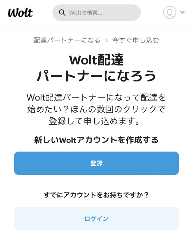 Wolt 配達パートナー登録のやりかたの流れをみていきましょう。